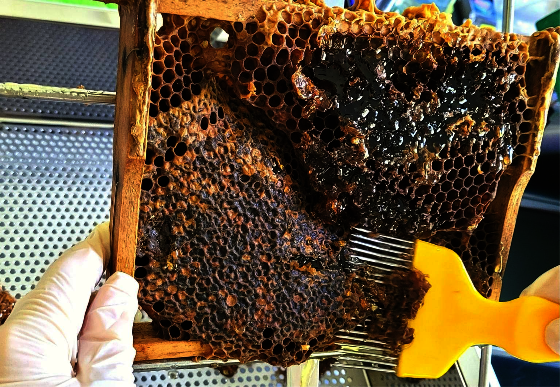 Zur Extraktion des Honigs haben wir diesen handgeschleudert, in Teilen gepresst. Die Filterung erfolgte über das Grobsieb, flottierende Wachsreste wurden manuell abgeschöpft. Der Honig ist vier Wochen gereift, wurde dann gerührt und abgefüllt.